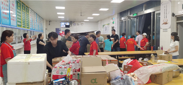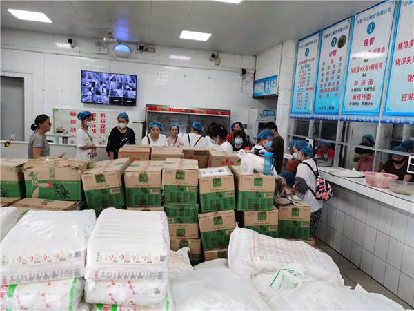 在校教师参与”爱心蒸包“物资搬运