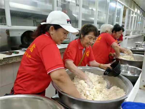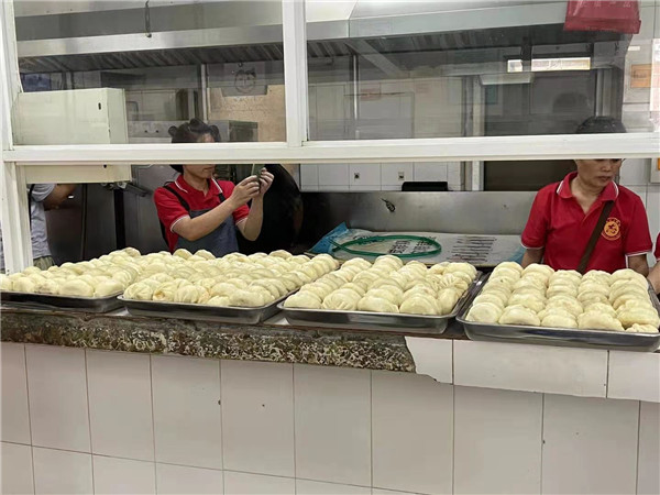 学校周边的群众加入到”爱心蒸包“志愿服务工作