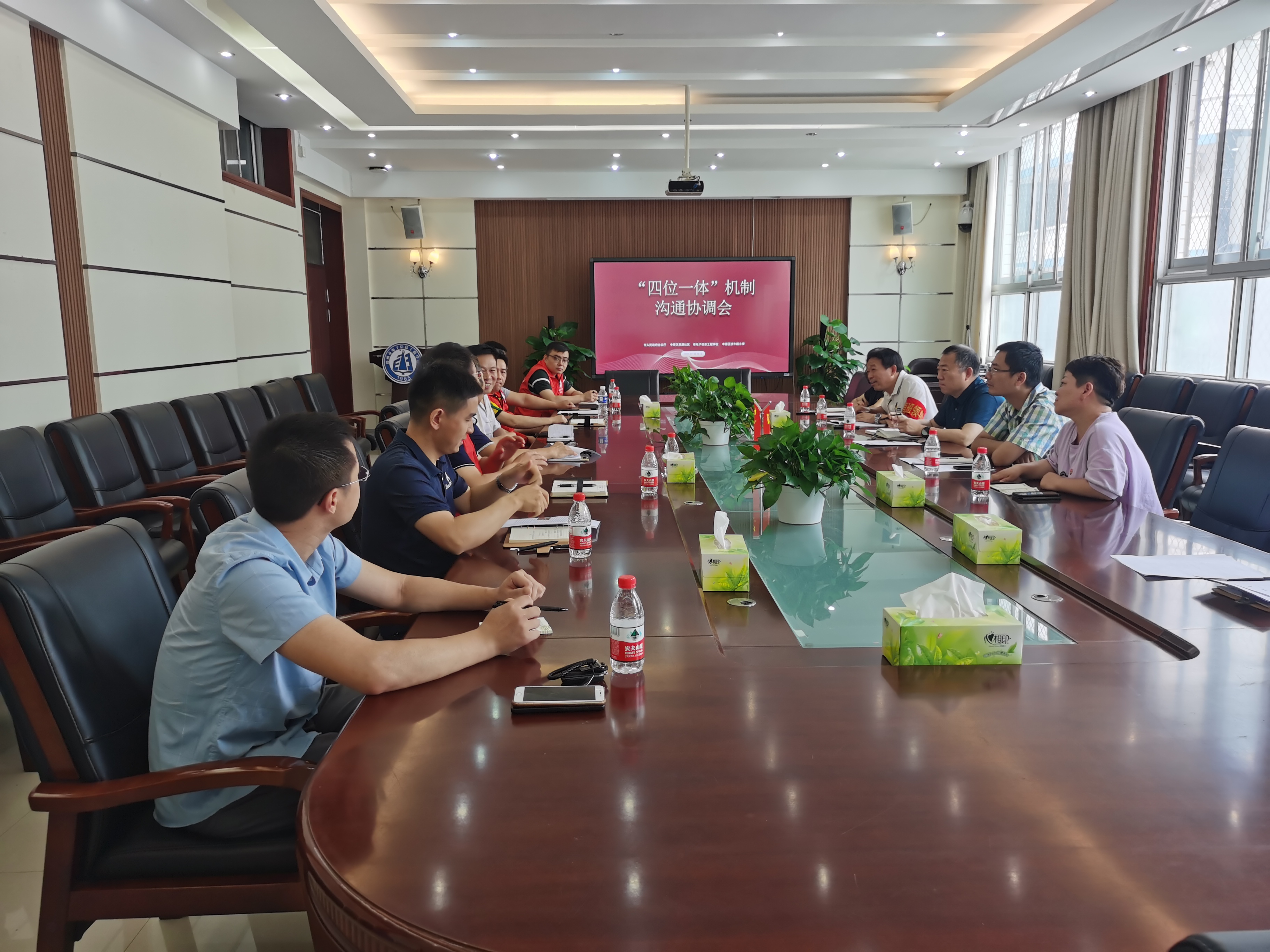2021年7月29日上午,市政府办公厅、郑州市电子信息工程学校、思源社区、伏牛路小学在郑州市电子信息工程学校召开“四位一体”工作机制沟通协调会,重点讨论此次安置点的安置工作有关协调问题。
