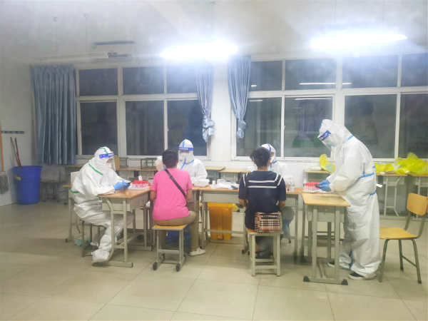防疫工作志愿者协助医护人员进行核酸检测工作