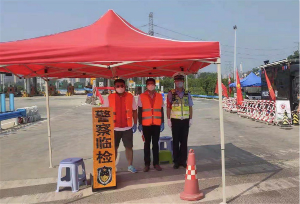 陈文龙(左一)和宋琳琛(左二)在高速口执勤