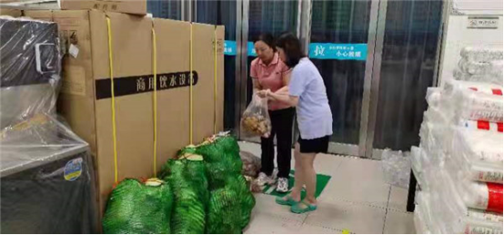 学校纪委书记史秀丽(左一)和政教主任张丽君(右一)连夜为”爱心蒸包“搬运学校提供的蔬菜