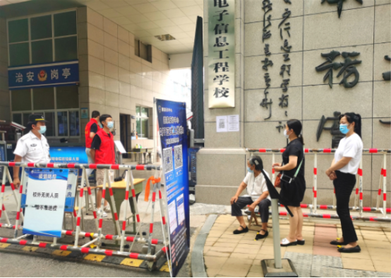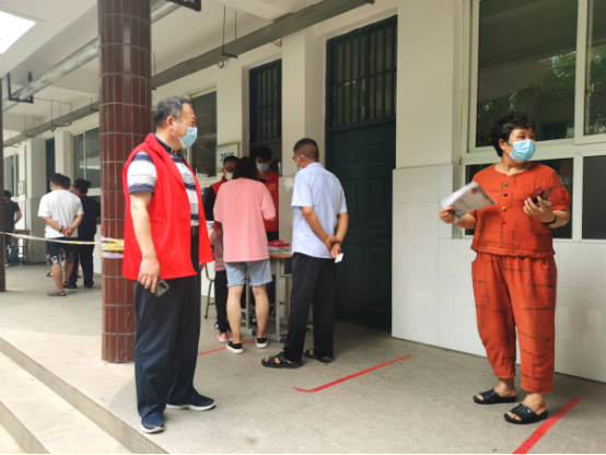 8月15日,郑州市电子信息工程学校为学校所在思源社区3000多名群众提供核酸检测志愿服务。该校党员教师纷纷踊跃参与,积极宣传普及防控知识,自愿参加志愿服务,用实际行动为郑州疫情防控做出贡献。在该校校园里,党员佩戴党徽、志愿者身披红色马甲,组织排队、引导群众、登记验证,各项关节紧凑连贯。身穿红色志愿者马甲的工作人员,穿梭在警戒内,让校园里处处流动着“志愿红”。