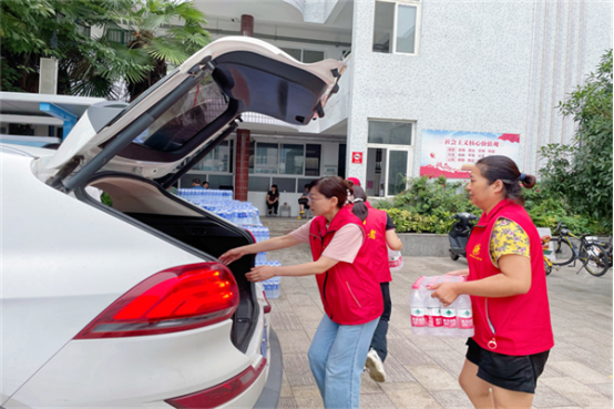 中层干部杨燕敏从7月21日开始就住进了办公室,在志愿服务第一线已经连续工作了近十五天,从没有休息过一天。她的大学生儿子舒奕杨从抢险救灾开始就跟在妈妈的身边,搬运物资、组织活动、看护小朋友,只要看到志愿者们忙不过来的时候,他都回去搭把手。在协助核酸检测时期,舒奕杨是学校第一个穿上防护服、坐在医护人员身边的志愿者,很多居民从他身边经过,却没有留意这个防护服后面的志愿者是一个只有20岁的学生。在脱下防护服后,杨燕敏老师看着孩子湿透的衣服、捂出的痱子,心疼的说:“你长大了!”在特殊的时期,在一群特殊的人群中,教师志愿者坚持坚守、不惧困难、不记得失、迎难而上,给身边的人都留下了深刻的印象,也在每个志愿者的心灵里留下了善良、坚韧,勇敢和担当的种子。