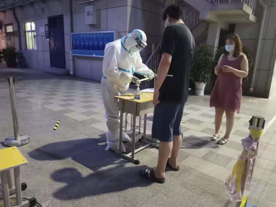 时值三伏,就连晚上都会让人感到闷热。为加快核酸检测的效率,减少居民等待的时间,学校志愿者们跟医护工作人员一起连续战斗,日夜兼程。志愿者郑义、李彦辉、李水冰、赵建伟、时子超、陈卓(小)、何泊、杜晓燕、李芳、李刚、刘奇超、单华等老师,在值班期间全心投入核酸检测各项工作中,用一个个具体的工作筑起疫情防控防线。