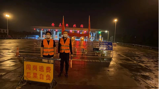 陈文龙(左一)和宋琳琛(左二)在高速口执勤