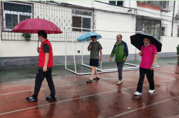 8月22日13时,大雨来临。学校应急抢险队第一时间投入战斗。大家撑着雨伞披着雨衣,搬运搬沙袋阻挡雨水,到楼房屋顶检查排水设施,检查变压器周围是否积水,到教工临时宿舍查看院内积水情况,查看校园地下排水管道排水是否畅通,每一位防汛抢险队员用实际行动保护着校园的安全,确保学校安全平稳度过暴雨的侵袭。