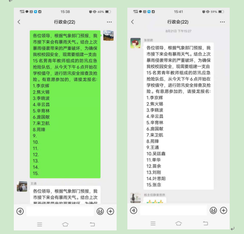 会后,防汛应急队伍在学校防汛指挥领导小组的带领下,立即行动。一方面大家集中力量把提前准备好的沙袋、雨衣、雨鞋、铁锨等防汛物资放到指定位置以备急用;另一方面迅速修改完善防汛应急预案,成立组织协调组、应急救援组及后勤保障组三个工作组,明确责任分工,同时制定24小时不间断巡视排查表,确保防汛应急工作能够迅速、高效开展。
