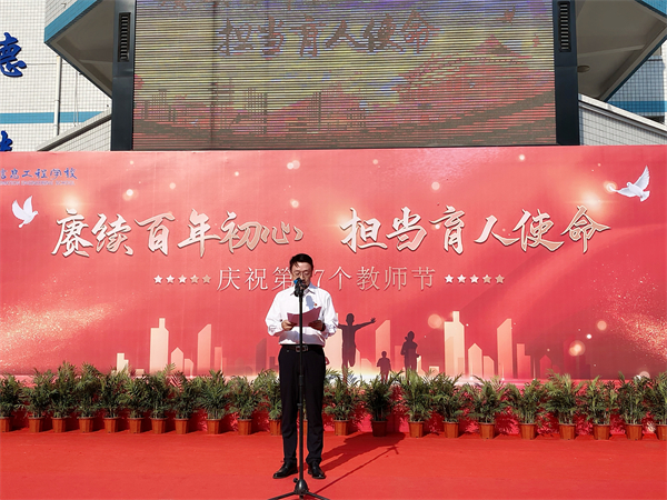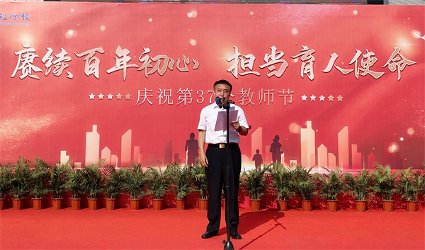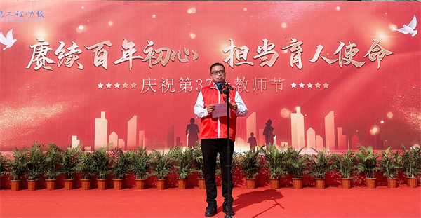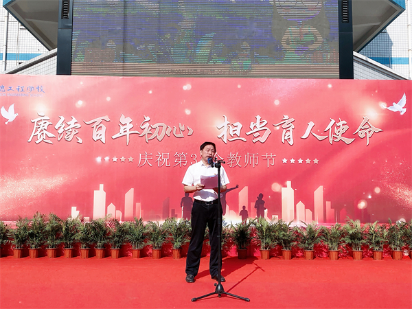 表彰活动结束后,校党委书记、校长李京辉校长做了教师节献词。他对全体教师坚持立德树人根本任务,潜心教育、热心职教进行了高度赞扬。对全校师生防汛、防疫工作进行了回顾总结,并结合党和国家对教师工作的期望和要求,鼓励大家“守好讲台、握好粉笔”,争做“四有好老师”,号召全体教职工赓续百年初心、担当育人使命,为学校的高质量发展努力奋斗。