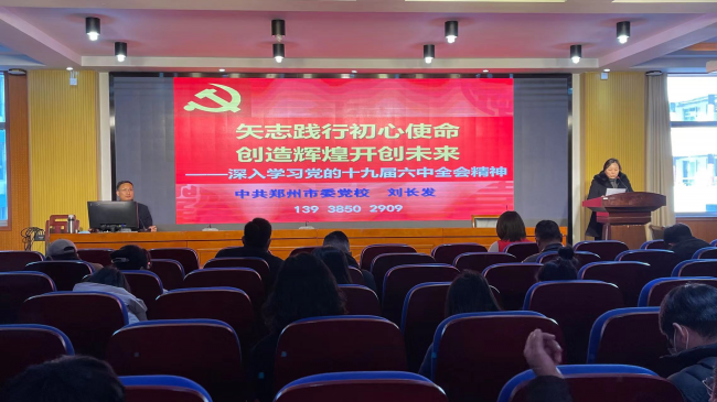 郑州市电子信息工程学校为深入推进学校思想政治教育,坚持用习近平新时代中国特色社会主义思想铸魂育人,学校于2021年12月2日邀请郑州市委党校党建教研部主任刘长发教授,围绕党的十九届六中全会、党的“四史”教育和党风廉政等方面,对全体教职工进行了为期一天的“党的创新理论宣讲进校园”专题培训。