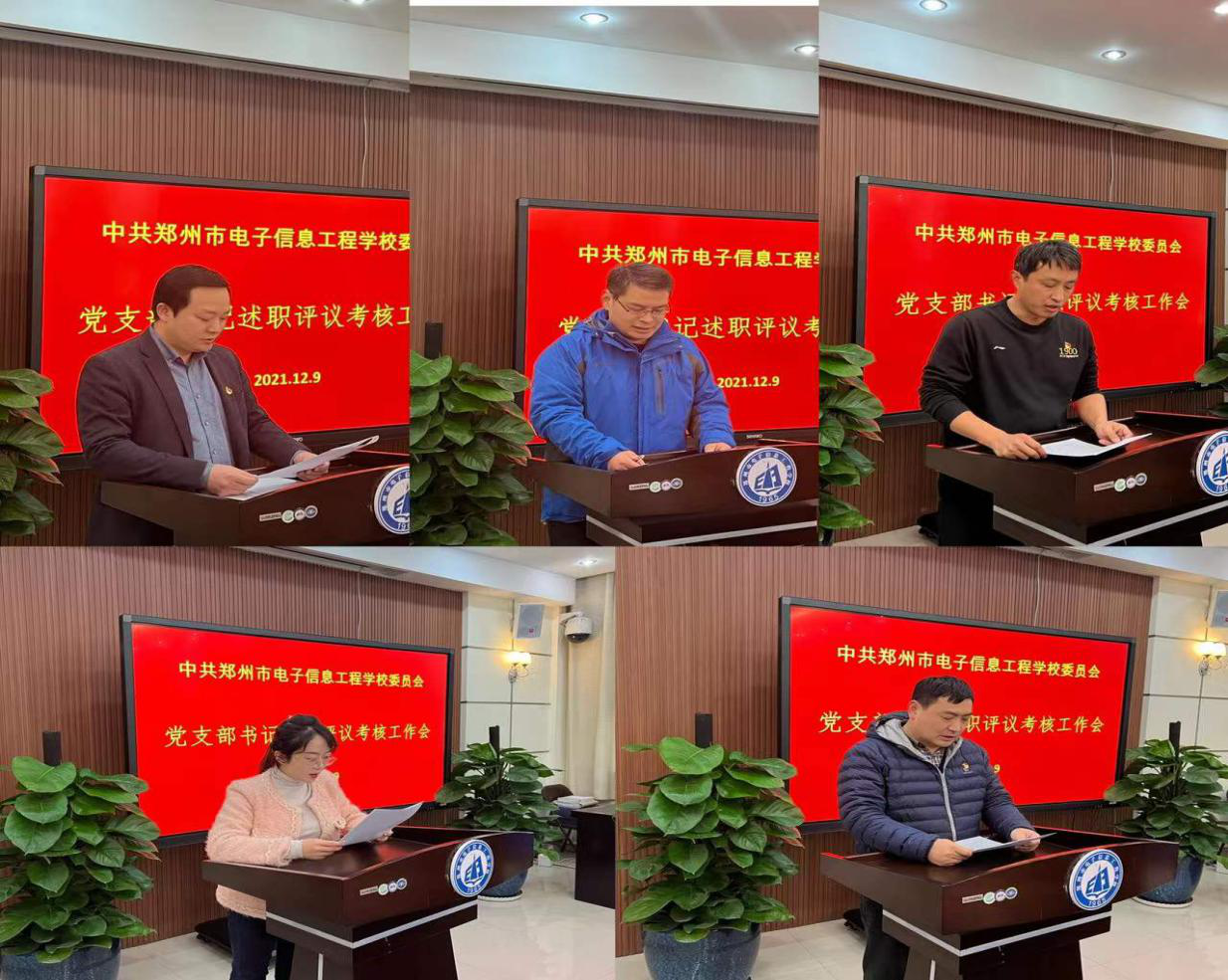为确保党建工作具体深入,推动基层党组织建设质量提升,按照学校党委的要求,12月9日下午,中共郑州市电子信息工程学校委员会在务本楼一楼会议室召开2021年度党支部书记述职评议会议。