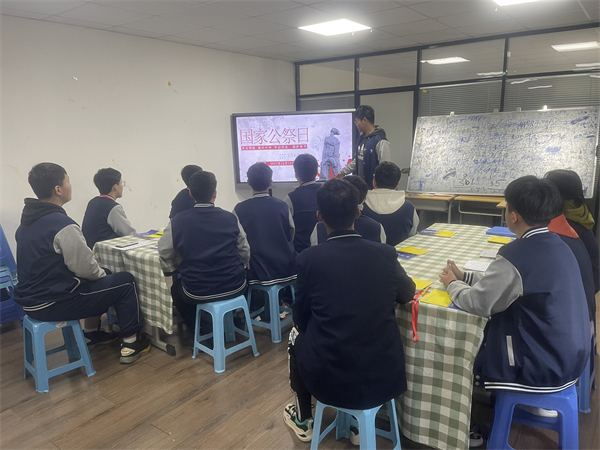 13日-14日,校团委将组织各班级学生利用自习课和晚自习时间,观看有关南京大屠杀的教育纪录片和影视并写出观影心得,让学生将从影片中获得的对战争的深刻认知,内化为对人性的思考,继而更加珍惜和平,产生积极向上的学习动力。