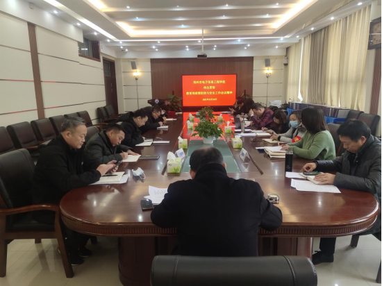 根据郑州市教育局防范电信诈骗“霹雳”行动工作方案,为进一步筑牢校园安全防线,2021年12月16日上午,郑州市电子信息工程学校召开校园安全工作会。郑州市电子信息工程学校党委书记校长李京辉、副校长高勤华、于蓉、李向伟、焦火锡、工会主席郭宝生、纪委书记史秀丽出席会议,参加本次会议的还有学校全体中层干部。