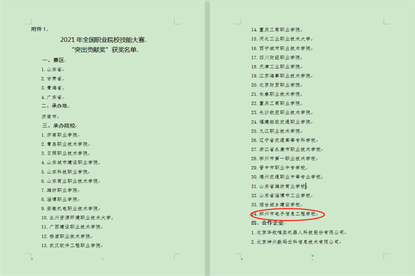 4、郑州市电子信息工程学校获2021全国职业院校技能大赛“突出贡献奖”