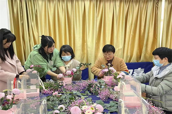 女教职工精心布置插花