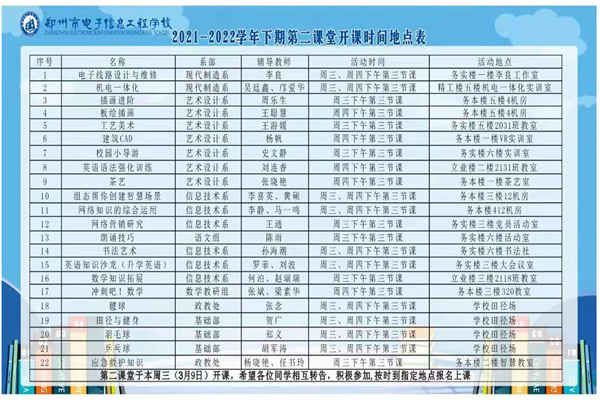 3月9日,郑州市电子信息工程学校2020-2021学年下期的“第二课堂”活动如期开课。