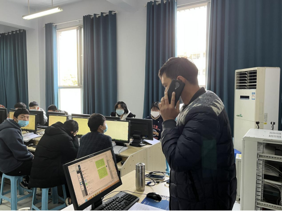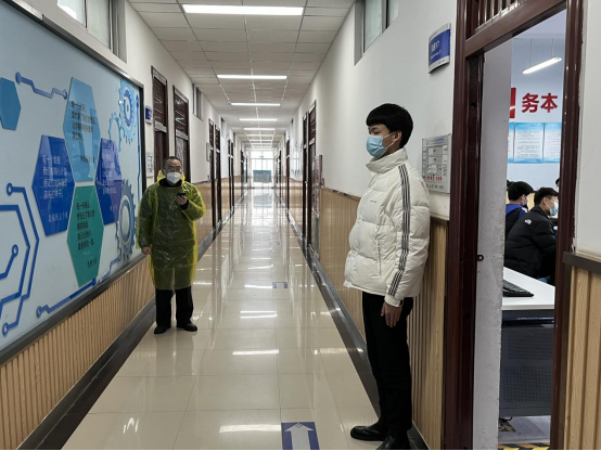 本次演练以郑州市电子信息工程学校2138班出现一名疑似病例为例,上午九点三十分,随着各班广播通知响起,演练正式开始,团委书记刘波宣读应急演练信息,要求全校师生、三保人员立即进入凝滞、静止状态,相关演练人员迅速到岗,随后德育副校长高勤华发出具体演练指令,各班迅速按照指令要求,任课老师立刻指挥本班学生戴好口罩,让其他学生与被通知的学生保持安全距离,联系校医报告情况,随后任课教师引导该学生前往班级门口空旷处,由校医带至校园隔离室,等待疫情防控部门下一步安排。