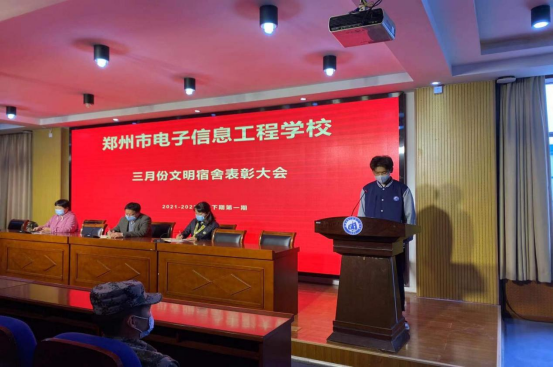 德育副校长高勤华对获得表彰的寝室表示祝贺,他对宿舍管理工作提出三点要求:一、共建文明校园,文明做人,文明做事,践行社会主义核心价值观;二、疫情期间,重视安全,搞好卫生,守护平安校园;三、按时就寝,按时起身,按时就餐,养成良好习惯。