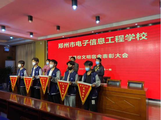 为培养学生良好生活习惯,营造温馨宿舍居住环境,促进学生文明行为养成,形成全校上下携手共建文明校园良好氛围。自开学以来,在学校领导的引领下:班主任、宿管老师、教官、宿管干部、全体学生共同努力,学生常规宿舍管理工作正常、有序进行,宿舍纪律、卫生进一步增强,宿管干部管理工作呈现出安定、团结的大好局面。根据政教处加强文明宿舍建设系列活动安排,3月30日下午我校开展文明宿舍表彰大会,德育副校长高勤华、政教主任张丽君、团委书记刘波出席会议,政教处张念老师主持会议。
