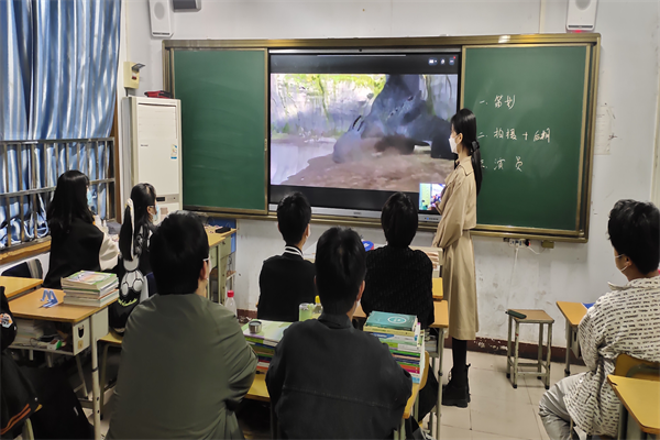 班主任老师带领同学们收看讲座