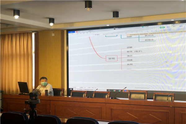 5月19日 主评委王耀治老师在全校教职工大会上汇报本次示范课情况