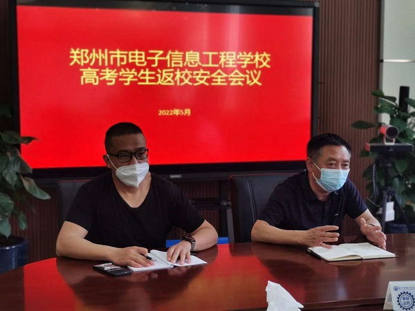 为了确保2022 年全市高考工作能够平安顺利进行,不受新冠疫情影响。郑州市电子信息工程学校按照上级要求让参加考试的学生提前返校,为确保工作顺利开展,综治办召开高考学生返校会议,深入贯彻落实上级有关会议精神,安排部署我校高考安全保障工作。会议由综治办主任苗畬主持。