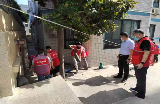 听完汇报检查组查看了安全档案材料,并在李京辉校长、于蓉副校长的陪同下对校舍、消防、窨井盖、排水管网、用电设施、防汛物资储备室等场所进行了实地查看,尤其对学校防汛应急演练全程观摩。