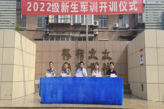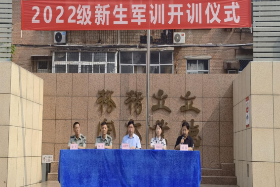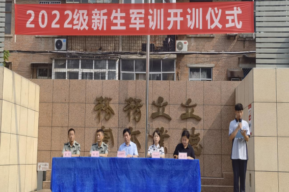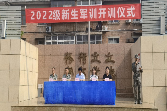 8月21日上午,我校2022级学生军训开营仪式在操场举行。郑州市电子信息工程学校德育副校长高勤华、政教处主任张丽君,承训单位郑州市国防科技学校军教处主任顾勇等人员出席仪式。承训单位教官、2022级班主任和全校2022级学生参加了开营仪式。军训开营仪式由团委书记刘波主持。