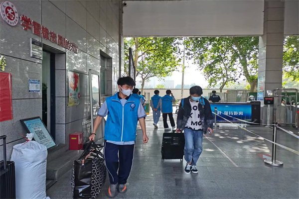 学生志愿者帮忙拉运行李