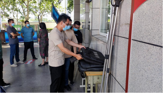 检查组查看大门口物防器械