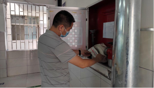 检查组查看消防器材