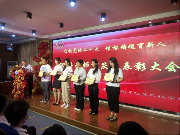 9月9日,在庆祝第38个教师节到来之际,郑州市电子信息工程学校召开2022年“迎接党的二十大,培根铸魂育新人”为主题的教师节暨表彰大会。对优秀竞赛辅导教师、优秀处室系部、校级优秀党员、校级优秀教师、校级优秀挂职锻炼教师、三十年教龄教师及在安全工作、文明创建工作、新闻宣传工作中表现突出教师进行集中表彰。