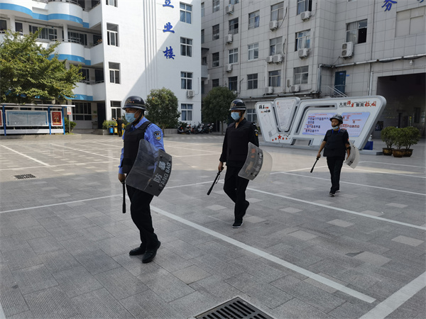 比赛期间,综治办负责比赛的安全保卫工作,负责参赛选手、教师出入校门的秩序维护与疫情防控工作。 综治办安保人员每天早晨6点到达开始准备,在选手与外校教师进场前进行“健康码”“行程码”检查,比赛开始后安保人员在指定位置安排人手负责维持秩序。晚上比赛结束后,对整个比赛场进行安全巡视,确认无安全隐患后,每天连续工作将近15小时。