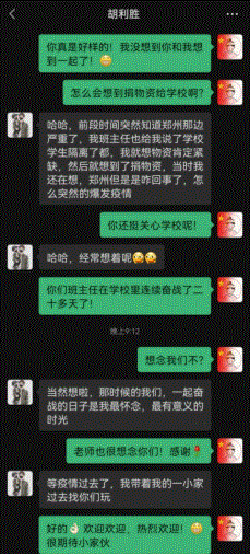 谁言寸草心,报得三春晖。这个秋寒正浓的11月,最暖的莫过于这涓涓的师生情。虽相隔百里,却能守望相助。郑州市电子工程学校走出的莘莘学子正如它朴实的校训一样,立德、立业、务本、务实。而此刻,这所学校的每一个人,都在竭尽所能,共同攻坚,相信不久后我们又能看到这一方校园的喧闹和绚丽,因为总有人在温暖的守卫这小小斯园!