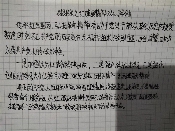 学校各班班主任带领学生深入了解和学习了红旗渠精神,观看、学习结束后,学生们被红旗渠精神所感染,纷纷表示要继承和发扬红旗渠精神,勇敢面对困难,积极进取、自力更生。