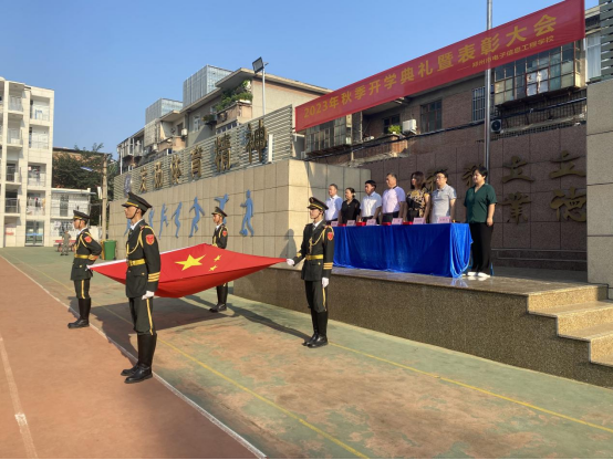 伴着初秋的脚步,满载喜悦和祝福,怀揣憧憬和希望,美丽的大电子又迎来了充满激情的新学年。9月4日上午八点,全体师生齐聚在操场,隆重举行2023年秋季开学典礼,会议由团委书记刘波主持。