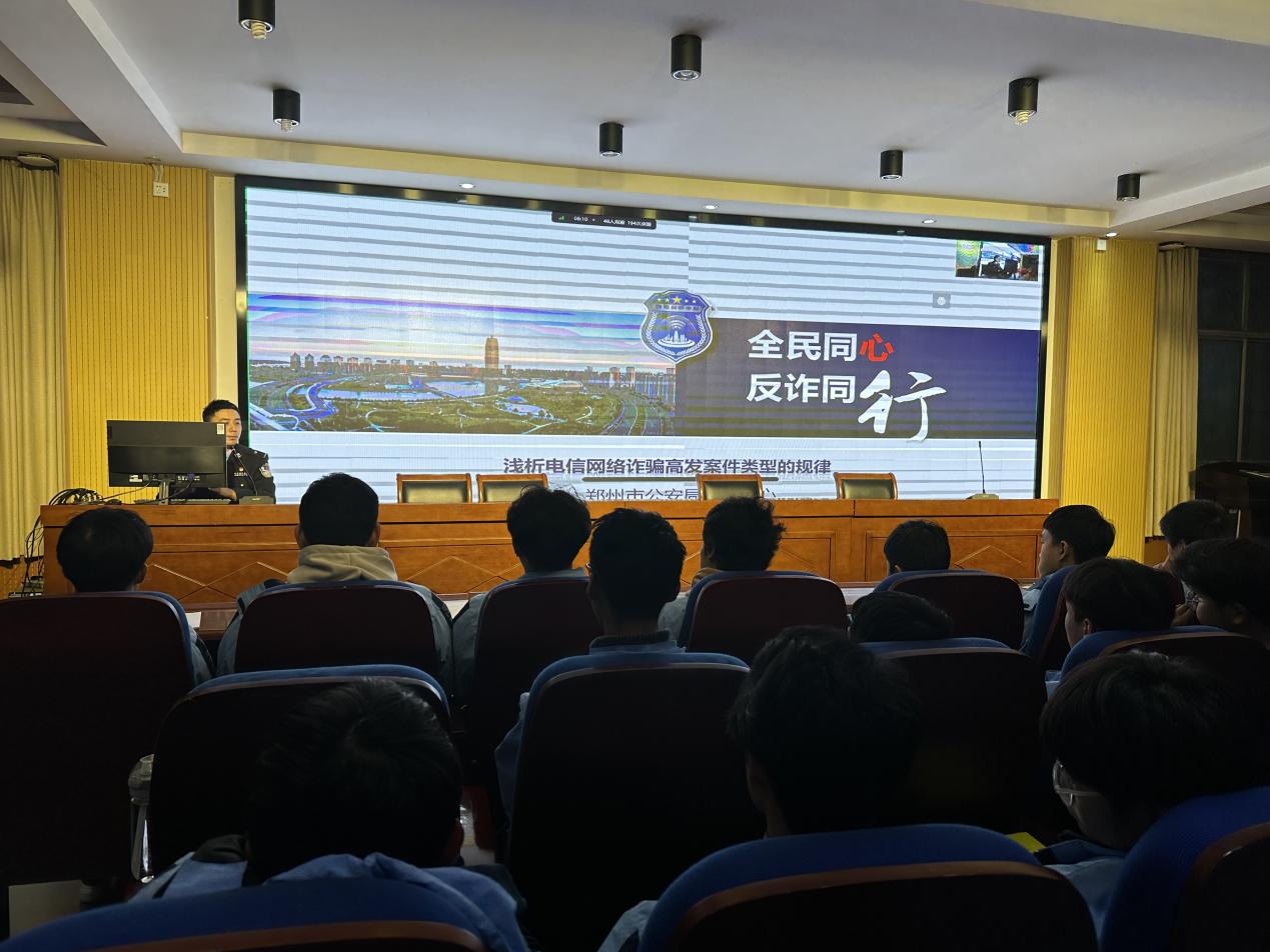 为切实维护校园周边安全和社会和谐稳定,严厉打击各种针对师生的电信网络诈骗违法犯罪行为,保障师生人身、财产安全,创造有利于广大师生健康、良好的教学学习环境。郑州市电子信息工程学校于2023年12月4日邀请了郑州市公安局反诈中心的民警,为全体师生进行了以“全民同心,反诈同行”为主题的预防网络诈骗的专题讲座,学校近100名师生现场参加讲座,1800余名师生线上参加讲座。