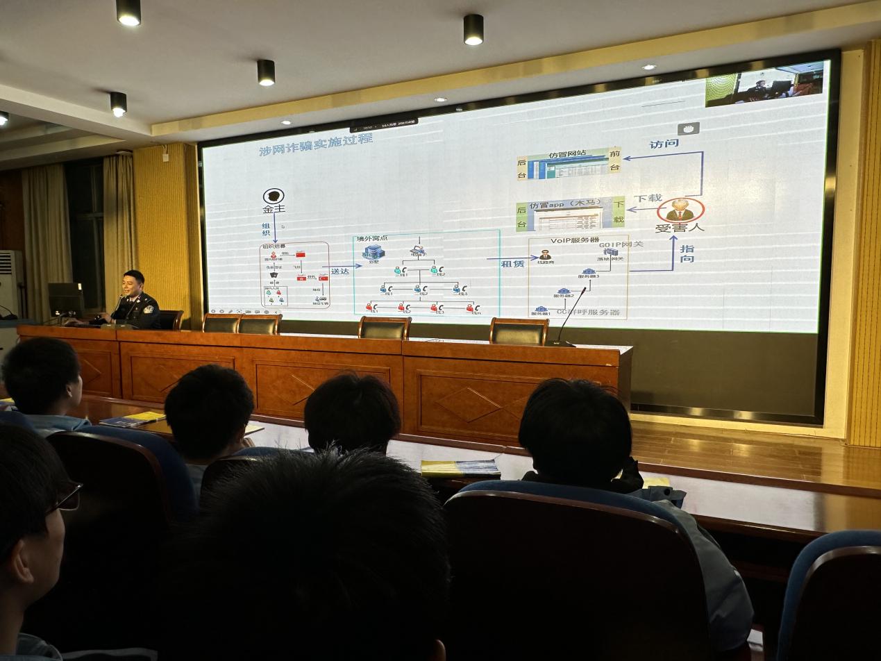 活动现场,孙宇警官通过以案说法,向大家介绍经常遇到的诈骗手段,通过插播多样化的科普视频,深入浅出地阐释了“洗钱”“刷单”“虚拟征信”等诈骗类型和手段,警示广大师生避免防不胜防的电信诈骗,简明扼要地为大家提供了如何保护个人信息、如何防范电信诈骗等实用措施。并重点介绍了《中华人民共和国反电信网络诈骗法》主要内容,特别向师生们强调了牢记“96110”全国反诈劝阻专线的重要性。