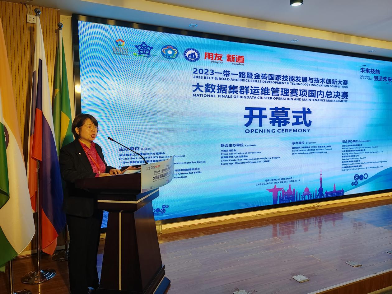 金砖国家技能发展与技术创新大赛组委会副主任何美连发表讲话。她表示,金砖国家技能发展与技术创新大赛是金砖五国最高领导人认可、在中华人民共和国外交部备案、政府间国际组织金砖国家工商理事会主办的国际竞赛成果,也是促进金砖国家间教育合作、技能开发、未来技能人才联合培养、创新技术最佳实践分享及人文交流的长效合作机制。金砖大赛连续六年作为《金砖国家工商理事会年度报告》重要成果设计,呈送给金砖五国元首,经过六届赛事的发展及完善,旨在通过竞赛实现以赛促学、以赛促训、以赛促评、以赛促建,通过产教融合推动课程体系、教学内容和教学方法等教学资源的改革和转化,培养更多未来技术技能人才。