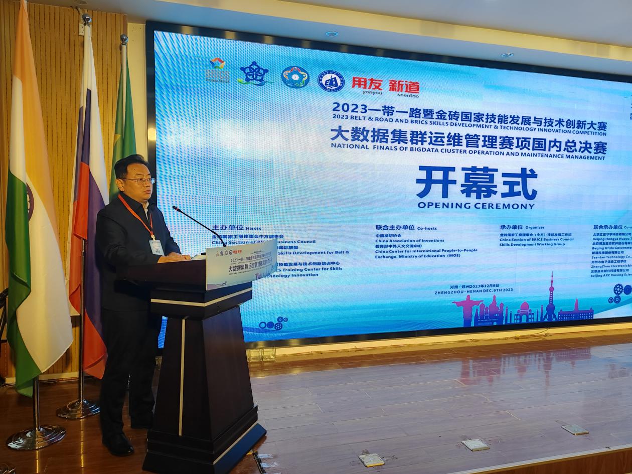 郑州市教育局副局长葛飞在致辞中表示,近年来,郑州市委、市政府围绕国家中心城市建设总目标,把职业教育放在教育创新和经济社会发展中的突出位置。2023一带一路暨金砖国家技能发展与技术创新大赛之大数据集群运维管理赛项国内总决赛落户郑州,是对郑州职业教育的肯定和检验,也是郑州职业教育国际化发展的窗口和契机。他希望郑州市电子信息工程学校此次作为大赛承办方,能够拿出参赛办赛的优良传统和扎实的作风,为参赛师生创造出规范、严谨、安全、舒心的竞赛环境。