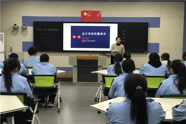 首先,郑州市电子信息工程学校杨静冉老师以《会计信息质量要求》为课题进行课堂展示,由实际案例引入,重点讲解了可靠性、实质重于形式、谨慎性三个原则,强调会计人员职业道德规范的重要性并落点于“三坚三守”的会计人员职业道德新规,与会计考证联系起来,将课程思政融于本节。