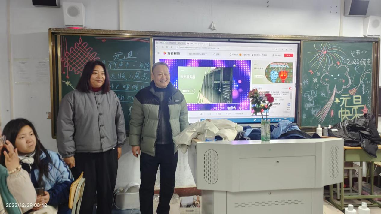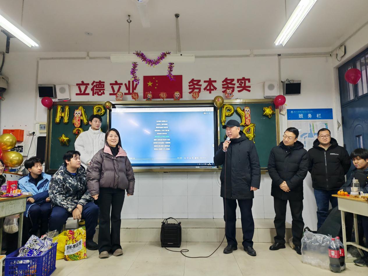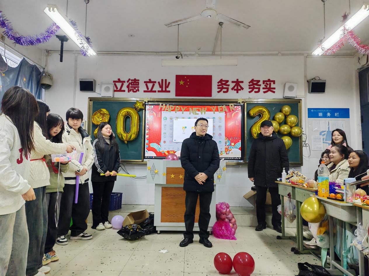 在这个欢乐祥和的节日里,校领导们也带着关怀与祝福走进各个班级。他们与同学们亲切交流互动,共同欣赏表演,感受着新年的喜悦与温暖。校领导们向同学们致以最诚挚的新年祝福,祝愿大家在新的一年里奋发向前、努力拼搏,为自己的梦想不断奋斗。