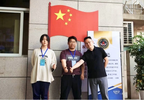 人物造型手绘设计赛项参赛学生和辅导教师王溢辞合影