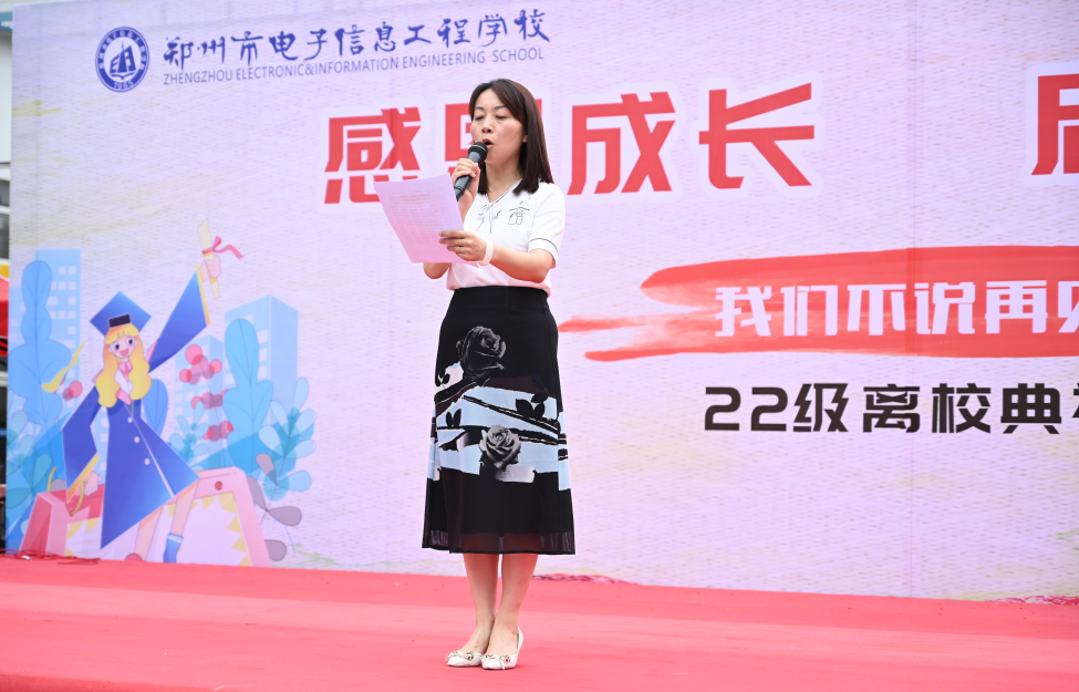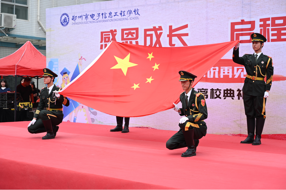 伴随着庄严的《义勇军进行曲》,郑州市电子信息工程学校2022级离校典礼正式开始。