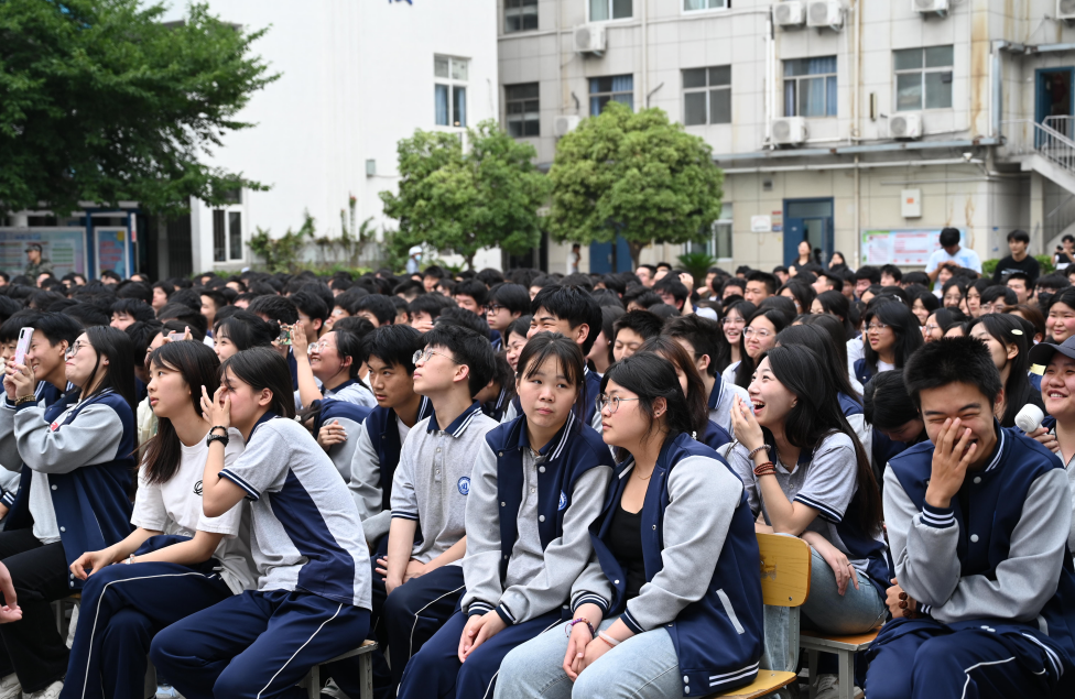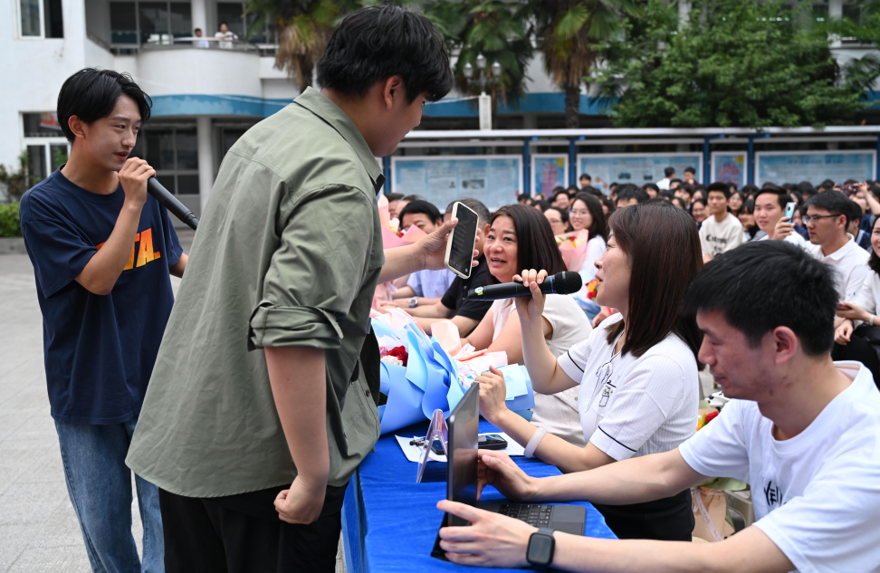 学生的一首《同桌的你》则是将整个典礼的离别情绪烘托到最高潮。明天你是否会想起,昨天你写的日记,明天你是否还惦记,曾经最爱哭的你。回首往事,才知时光匆匆,如果要说一生中最快乐的日子,莫过于这样的学生时代。唱到动情处,更是邀请校领导一同合唱。