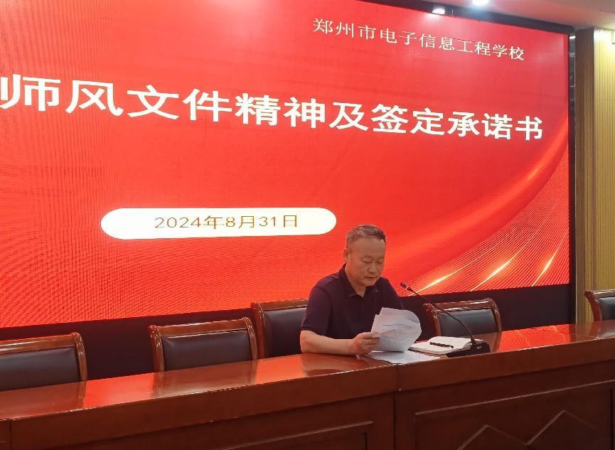 8月31日上午,郑州市电子信息工程学校召开2024-2025学年秋季学期全体教职工大会,学校领导班子和全体教职工参加会议。