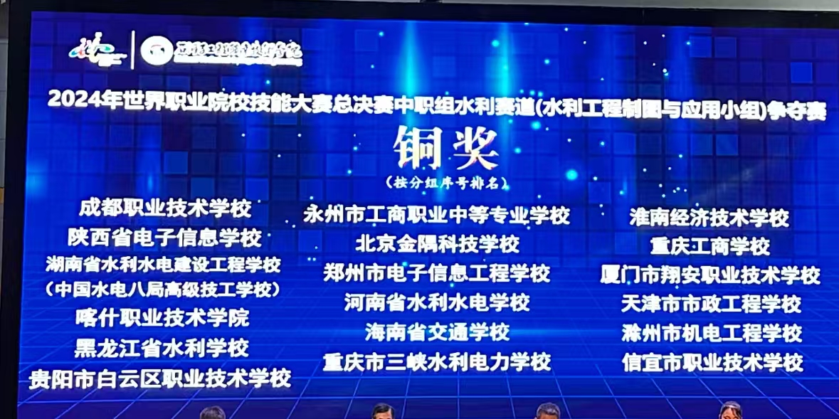 祝贺我校2024年世界职业院校技能大赛总决赛中职组水利赛道水利工程制图与应用组争夺赛荣获铜牌