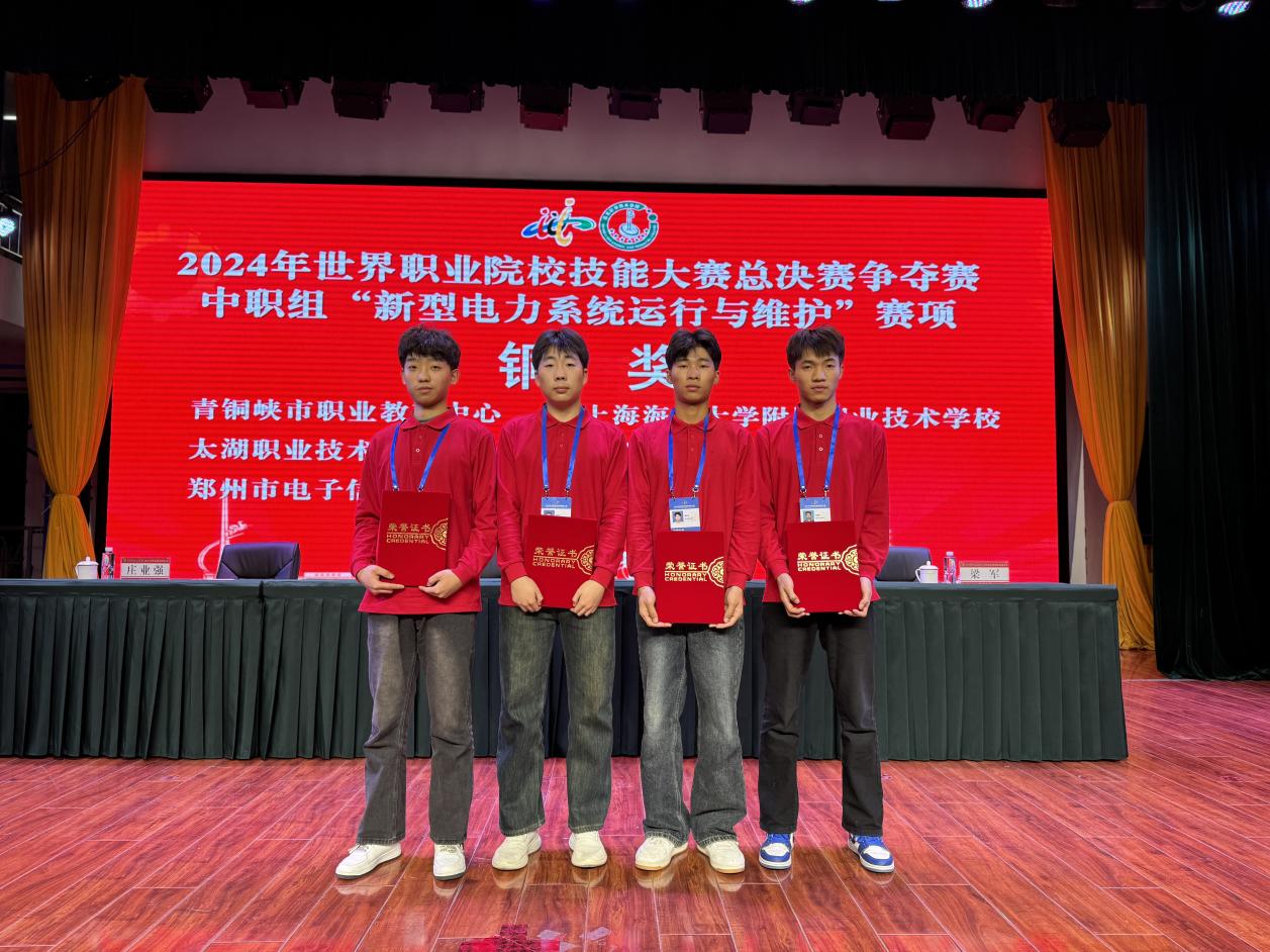 10月31日,在备受瞩目的2024年世界职业院校技能大赛总决赛中职组能源动力与材料赛道新型电力系统运行与维护组争夺赛中,郑州市电子信息工程学校代表队凭借出色的表现和扎实的专业技能,荣获铜奖,为学校赢得荣誉。