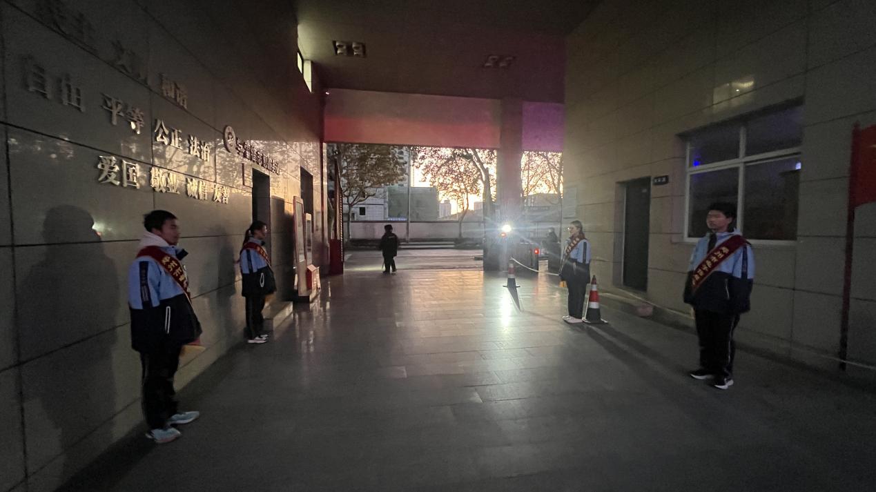 沐浴着寒冬的晨曦,全体同学以饱满的热情和积极的态度,准时出现在了自己的岗位上。这一周里,同学们冒着严寒打扫校园里不时飞落的枯叶,贡献出一片干净整洁的校园;巡视岗和监督岗的同学仔细巡查着学校的各个角落,制止同学乱扔垃圾、追逐打闹,确保校园秩序的和谐稳定;礼仪岗的同学格外辛苦,早上七点多,就守在学校大门口,迎接同学和老师的到来,尽管校门口冷风从不停息,但是依然无法熄灭礼仪岗的热情;国旗岗的同学每天迎着日出升旗,送着日落降旗,没有一分钟的耽误。