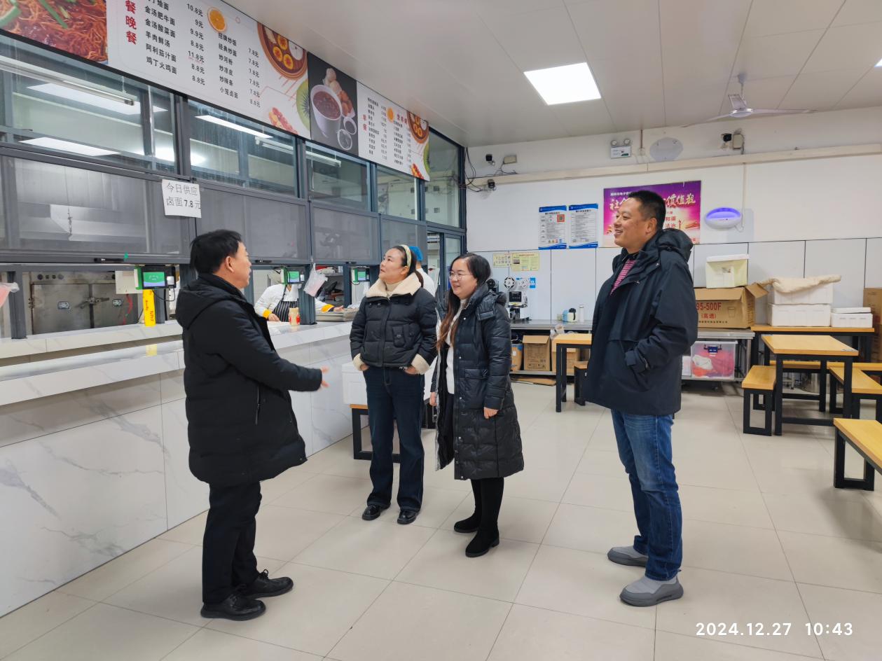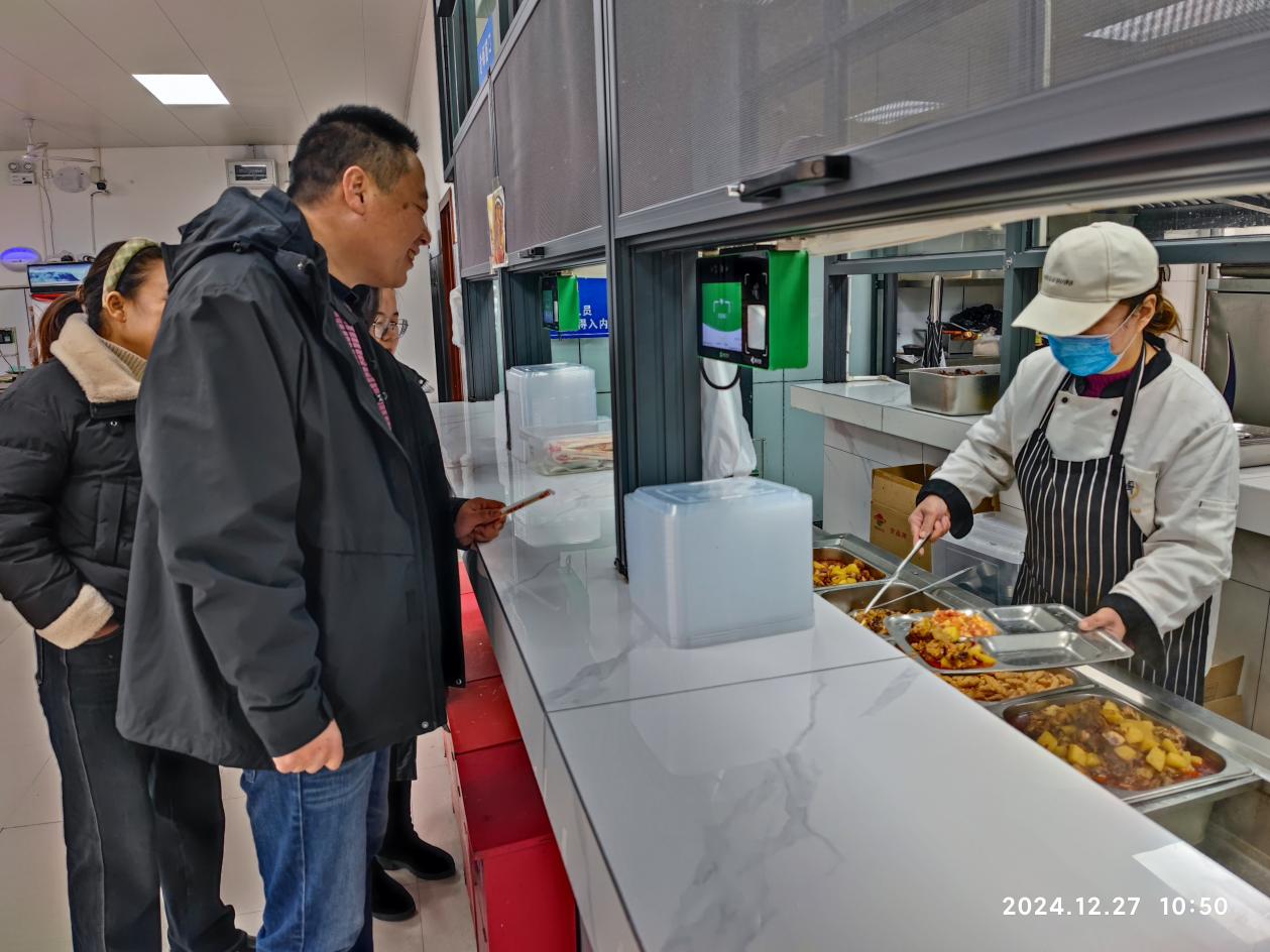会议结束之后,学校领导与家长委员们一同实地查看了学校餐厅。其间,总务处邱峰老师向家长代表详细阐述了食堂原材料采购流程以及每日验菜制度,并引领大家深入食堂各功能区,现场观摩食堂清洗、烹饪、配餐等环节的规范操作流程,使大家能够“零距离”直观感受校园食堂的运作机制以及学生们的就餐环境。随后,委员会成员在学校用餐,亲身体验了食堂的餐饮服务,进一步深化了对食堂运营情况的认知与感受,家长们对食堂的卫生状况、菜品质量以及服务水平均给予了高度评价。